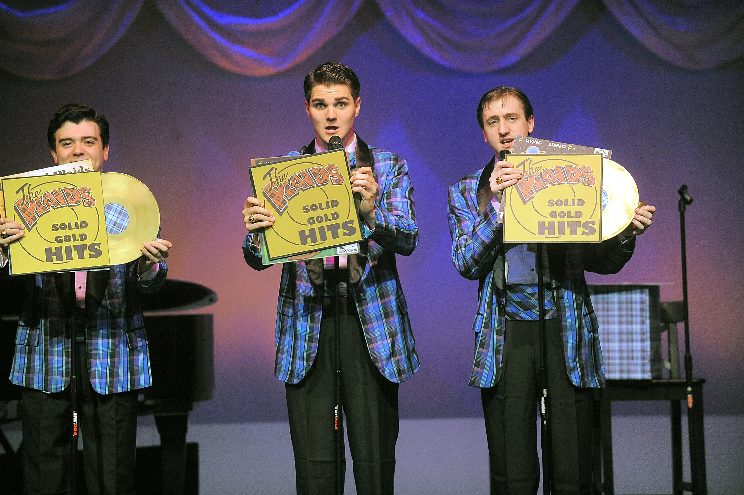 One of the most popular musicals in recent years, this “deliciously goofy” revue spotlights four talented young male singers posthumously revived to fulfill their dreams of 1950’s entertainment-career success after being killed in a car accident on the way to their first big concert. They have somehow been miraculously granted the opportunity to perform the show that never came to be. Close harmony, precision choreography, and outlandish banter keep audiences “rolling in the aisles” while humming along to some of the greatest nostalgic pop hits of all time, among these Love Is A Many-Splendored Thing, Moments to Remember, Three Coins in the Fountain, Shangri-La, Crazy ‘Bout Ya Baby, No Not Much, Sixteen Tons, Catch A Falling Star, Cry, Lady of Spain, and even a few audience sing-alongs. Perfect chords accompanied by memorable musical moments – these epitomize the songs of America’s most innocent years. Experience their warmth once again or for the first time – in full, colorful “plaid”!