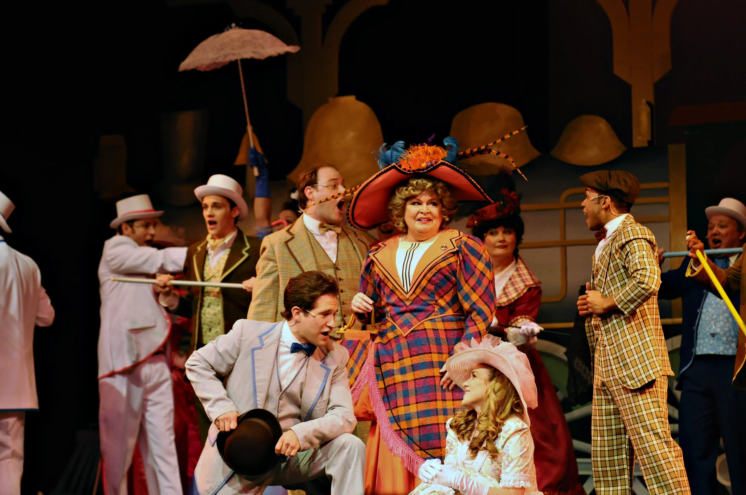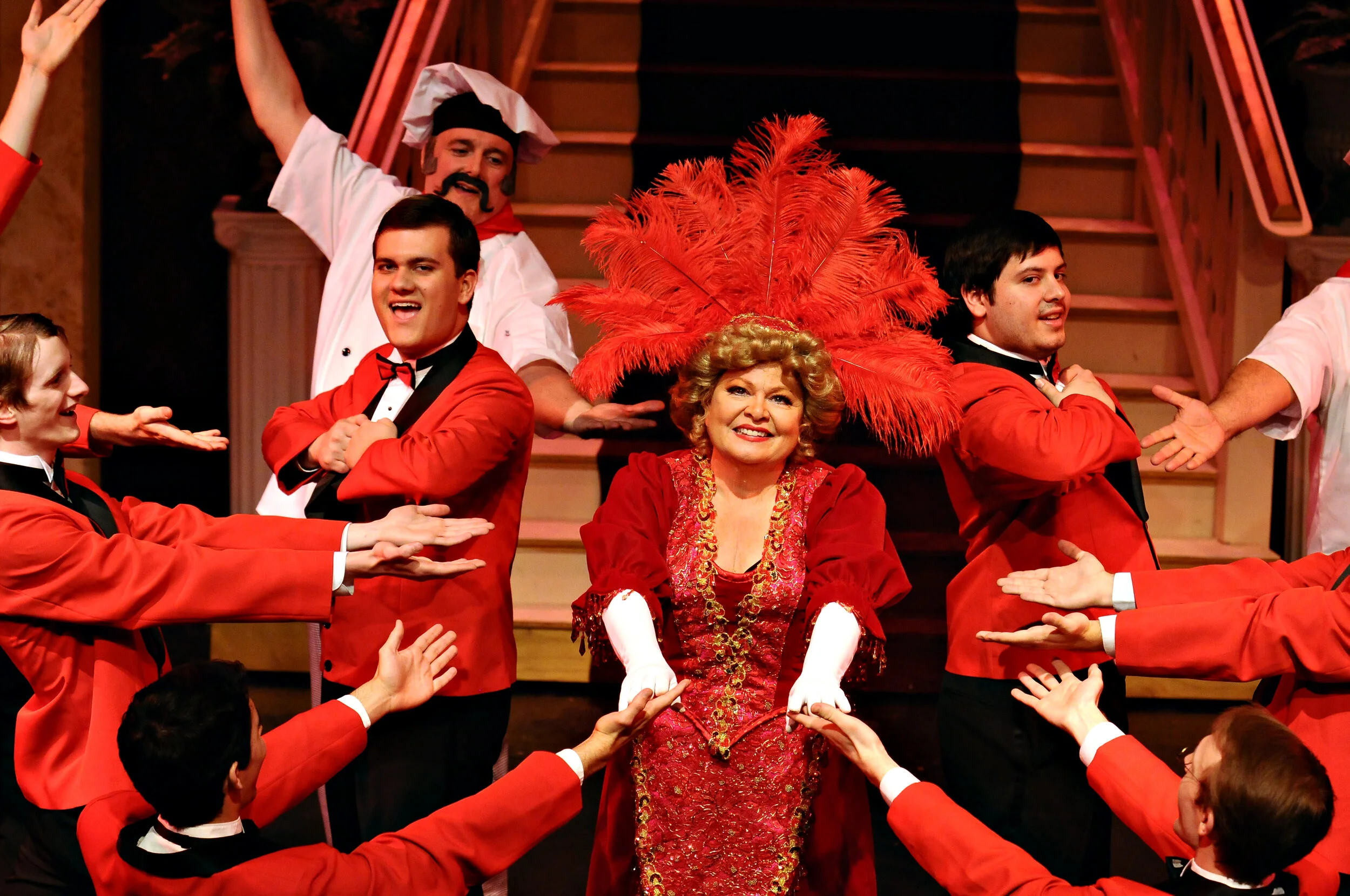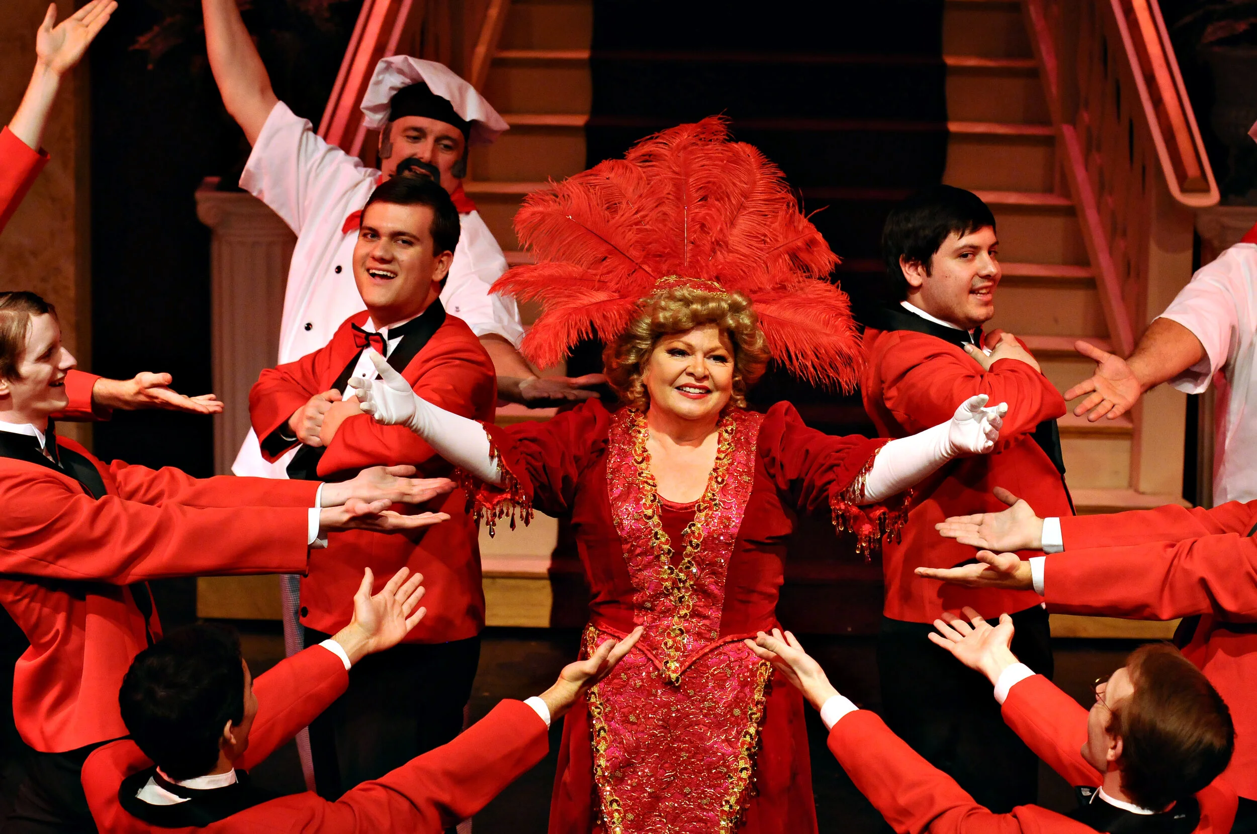 In this exclusive Virginia dinner theater engagement, Emmy award-winning actress Sally Struthers (All in the Family, Gilmore Girls) comes to the Riverside Center stage to reprise one of her favorite Broadway stage roles, the irresistible and unforgettable Dolly Levi. Dolly, a widow and self-made matchmaker extraordinaire, sets her sights on marrying well-known millionaire Horace Vandergelder and liberally circulating his money like her late husband taught her. Along the way she succeeds in matching up three attractive but rather unconventional couples. The Harmonia Gardens restaurant scene where Dolly is greeted by waiters, cooks and wine stewards singing Hello, Dolly! is a classic in the annals of American musical comedy. Included in this joyous score are the songs Put on Your Sunday Clothes, Ribbons Down My Back, Before the Parade Passes By, It Only Takes a Moment, and So Long, Dearie.