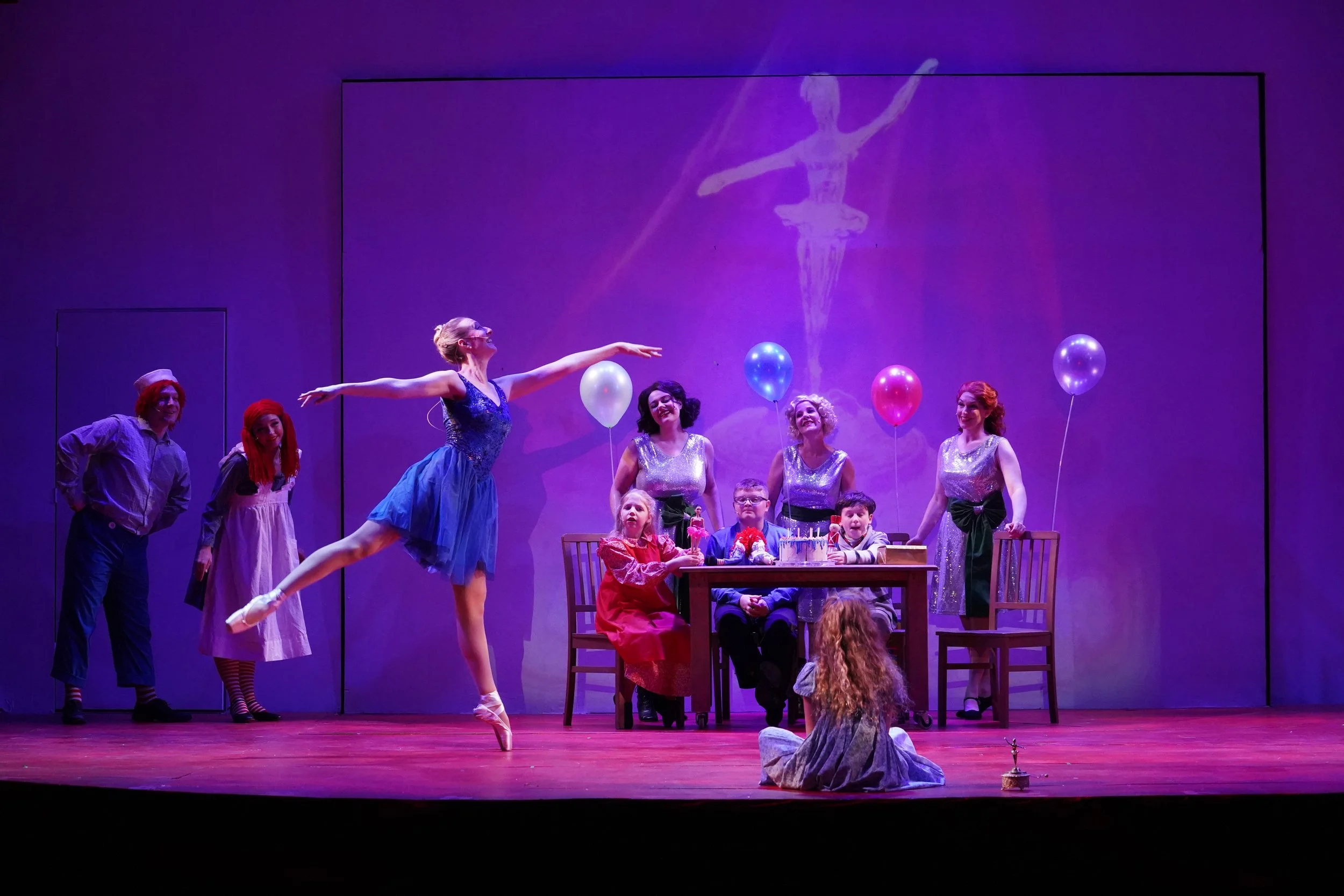 ABOVE: members of the ensemble (dance captain Stephanie Wood in blue dress) in ‘Miracle on 34th Street.’ Photos by Suzzane Rossi.
